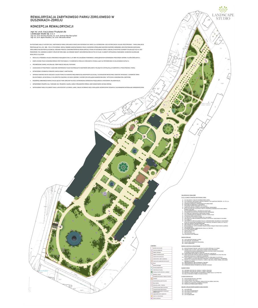 fontanna, park zabytkowy, pawilon, zieleń pomnikowa, nawierzchnie przepuszczalne, gospodarka wodą opadową, nasadzenia roślin,